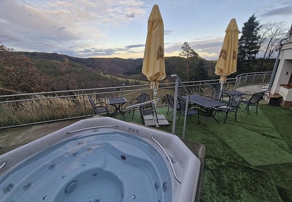 Přijďte si odpočinout a zrelaxovat do krásného wellness s výhledem na Vysočinu. Máme otevřeno i pro veřejnost a je pro vás připravený vnitřní bazén, vnitřní i venkovní whirpool a parní sauna.
